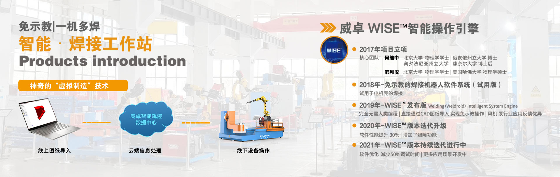 無(wú)錫威卓智能機(jī)器人有限公司成立于2017年,是無(wú)錫市政府引進(jìn)的科技領(lǐng)軍型高新技術(shù)企業(yè),公司研發(fā)團(tuán)隊(duì)80余人,我們堅(jiān)持自主創(chuàng)新,利用自主開(kāi)發(fā)的虛擬制造技術(shù)對(duì)傳統(tǒng)焊接行業(yè)進(jìn)行升級(jí)改造。 公司主推的工業(yè)風(fēng)機(jī)系列-智能焊接工作站產(chǎn)品,具有免示教、實(shí)時(shí)跟蹤、簡(jiǎn)易工裝、傻瓜式操作等優(yōu)點(diǎn),真正幫助企業(yè)解決了招焊工難,用工成本高,焊接質(zhì)量不穩(wěn)定等問(wèn)題。