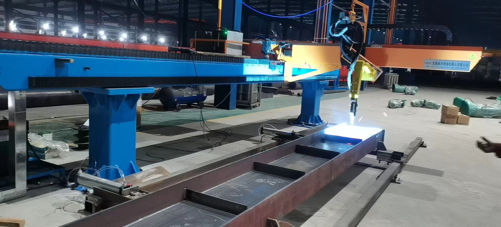 智能焊接在鋼構(gòu)行業(yè)的成功應(yīng)用針對(duì)鋼結(jié)構(gòu)中常見(jiàn)的H型鋼等鋼梁工件,威卓設(shè)計(jì)研發(fā)了小龍門(mén)智能焊接工作站,焊槍部分使用鋼梁專用焊槍,更適用于鋼梁焊接;搭配傳感器使用,自動(dòng)尋位識(shí)別焊縫,無(wú)